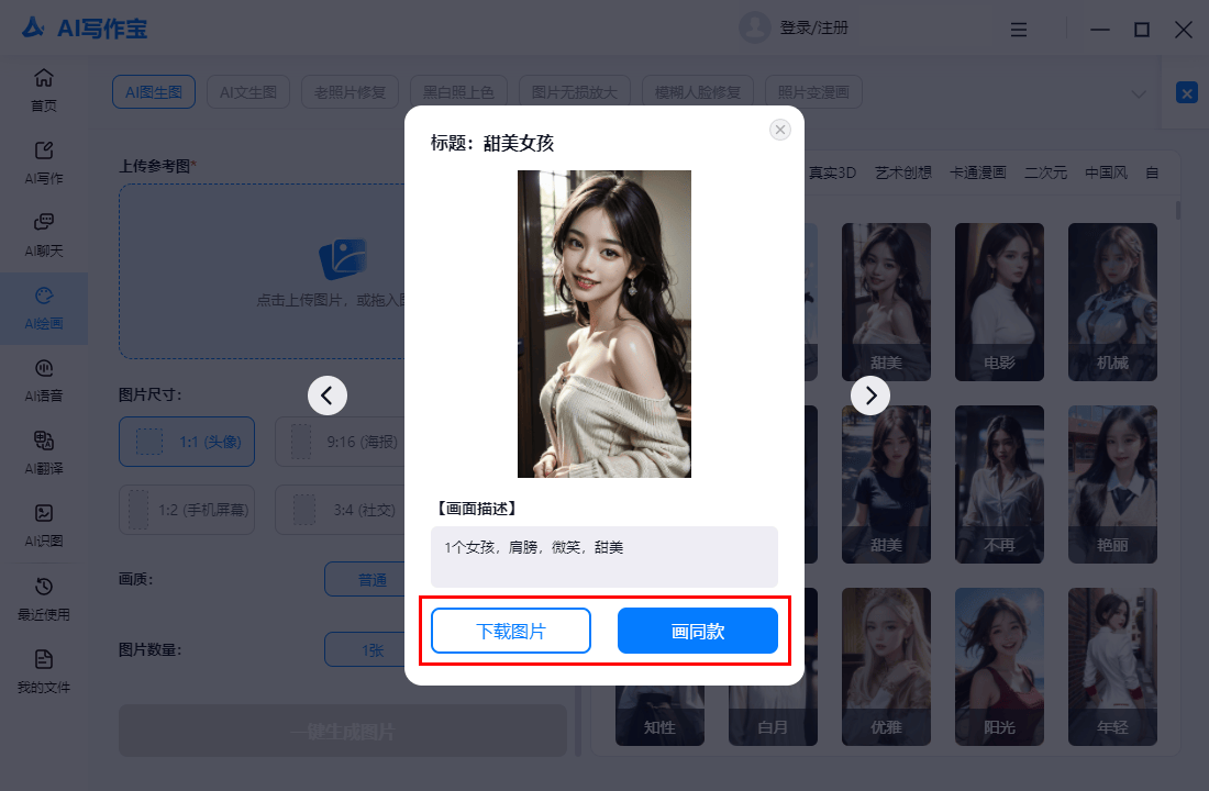 这五款ai绘画免费图生图东西就先为大师引见到这里,它还供给了丰硕的自定义选项,